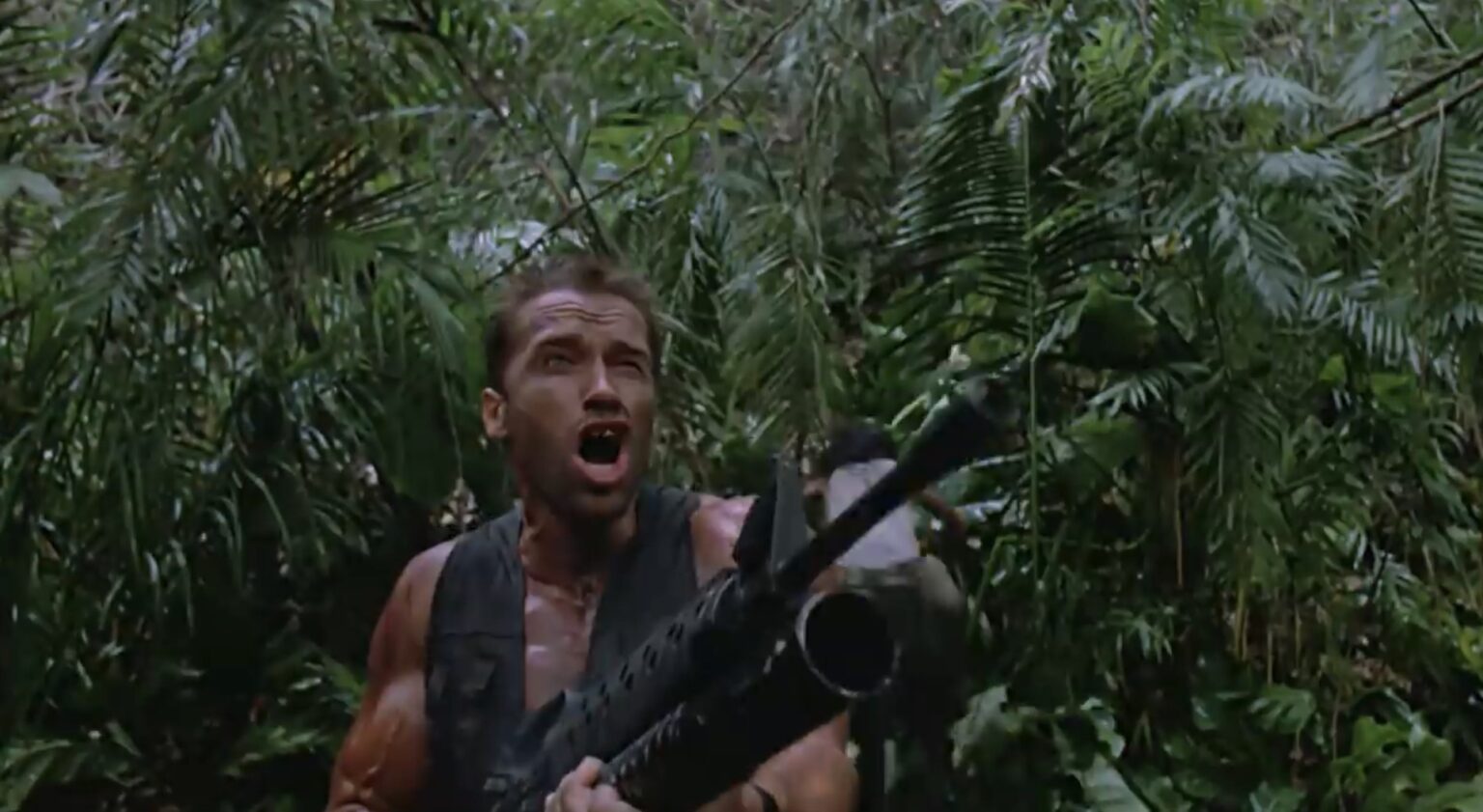 Arnold byl v téže době v takové formě, že se traduje, že musel dokonce shodit několik kilogramů své svalové hmoty, aby se kameramanovi lépe vešel do záběru. I přesto je scéna, kdy si dává páku z Dillonem (Carl Weathers), velmi kouzelná. Schwarzenegger měl tehdy možná nejlepší kondičku, i když je těžké srovnávat to s jeho stejně účinným vzezřením v prvním a druhém Terminátorovi, kde také chodil chvíli polonahý.